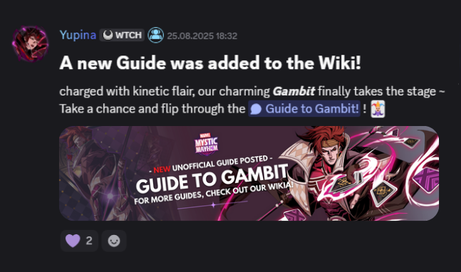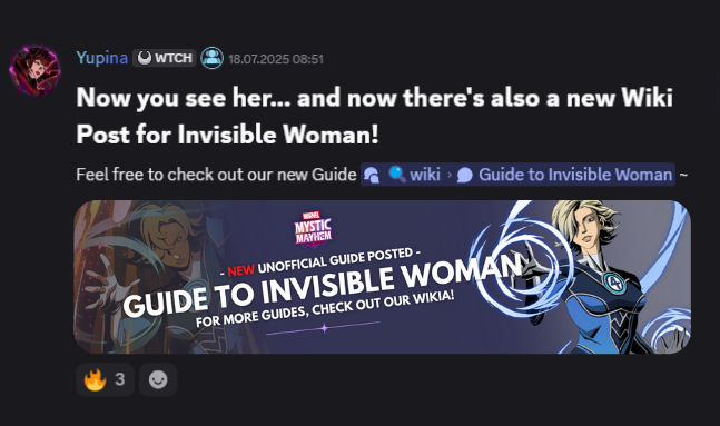 Im Discord-Server von Marvel Mystic Mayhem bin ich seit des Beenden der Closed Beta als Moderatorin aktiv.