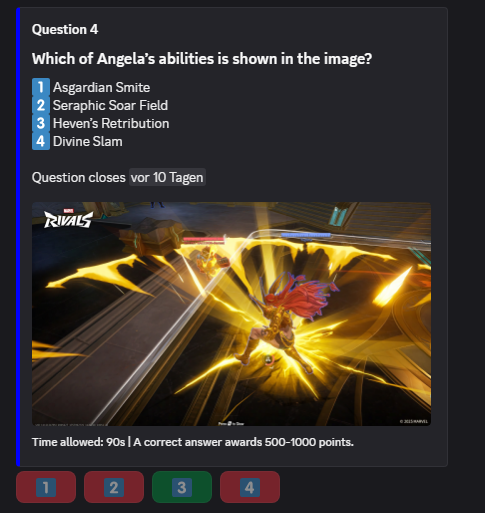 Seit Dezember 2024 bin ich als Senior Mod Teil des Moderationsteams im offiziellen Marvel Rivals Discordeiner Community mit über 4M Mitgliedern weltweit.